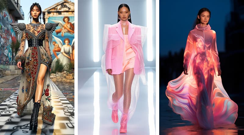 Os tecidos gerados por IA estiveram em evidência, revelando a versatilidade e a inovação que a aprendizagem de máquina traz à paleta da moda. Materiais que mudam de cor ou que respondem a estímulos ambientais foram exibidos, mostrando os têxteis do futuro. Os designers não hesitaram em integrar estes tecidos futuristas nas suas coleções, criando peças que não só eram visualmente impactantes, mas que também contavam uma história de sustentabilidade e progresso tecnológico.